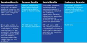 This, clubbed with the economic value offered by geospatial technologies in supporting sustainable agricultural practices including land restoration and natural resource management, makes a significant impact on the agricultural economy. A conservative estimate of the Geospatial Value Impact (GVI) on the agricultural sector is given in the table below.